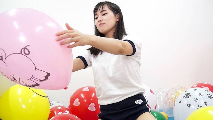 濃紺ブルマと鮮やか風船のコントラスト女の子がブルマ姿でいろ〜んな風船遊び! |